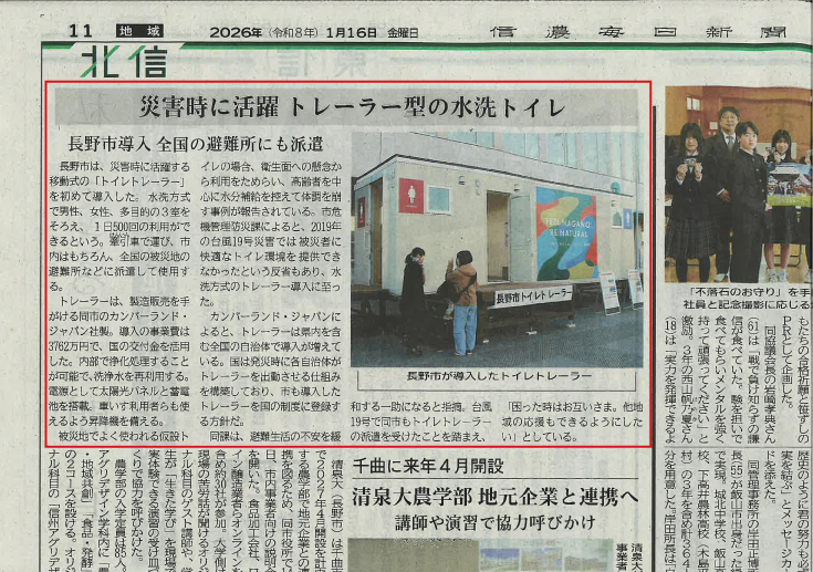 アクセス よくあるご質問 販売店募集 026-221-9997 9:30~18:30 年中無休 トレーラーハウス 住居モデル 店舗モデル 中古情報 活用事例 住居活用事例 店舗活用事例 災害時の活用 会社概要 お問い合わせ アクセス 中古・下取り 製造と輸送 製造について 輸送について レンタル・ローン 保証と・アフターサポート 法的基準 よくあるご質問 販売店募集 採用情報 メディア情報 お知らせ 宿泊 見積シミュレーション カンバーランドHOME新聞・メディア掲載信濃毎日新聞2026年1月16日 災害時に活躍 パークトワイレ MEDIA 新聞・メディア掲載 信濃毎日新聞2026年1月16日 災害時に活躍 パークトワイレ 長野市にパークトワイレを導入しました。 YouTubeなど動画も公開しています トレーラーハウスのご紹介から活用例まで、動画でもご覧いただけます。 テレビ出演時のインタビューや、企画開発~製造の様子まで。